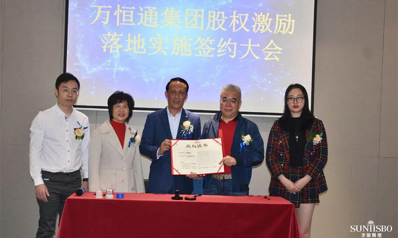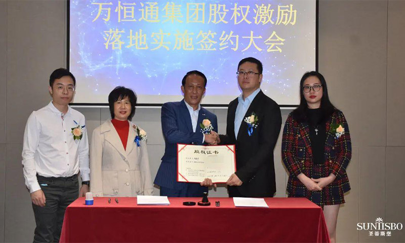 ballbet贝博·(中国)集团执行董事及法人代表王浩基先生正式为第一期六位虚拟受限股股东授予荣誉证书并签订股权分配协议。